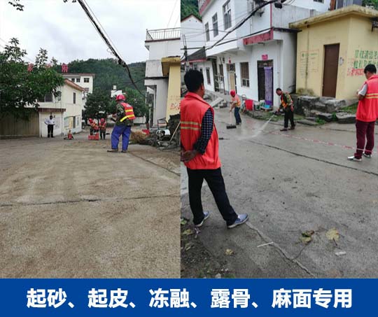 表層路面出現(xiàn)起砂病害修補(bǔ)前清理路面用水沖刷干凈修補(bǔ)后效果展示2小時(shí)即可通車(chē)修復(fù)...
