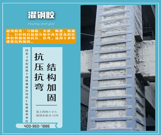 灌注粘鋼膠采用改性環(huán)氧樹脂為基礎(chǔ)