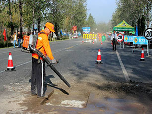 表層路面出現(xiàn)起砂病害修補(bǔ)前清理路面用水沖刷...